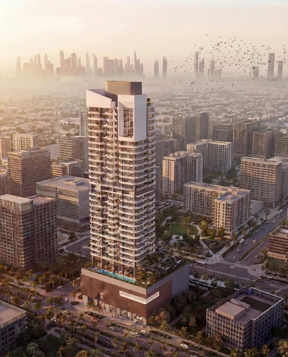 Arthouse Park Heights is a contemporary mixed-use development by Veha Developments, located in Jumeirah Village Circle (JVC) in Dubai. The project features a 28-story residential tower offering 323 semi-furnished apartments as well as 27 office spaces, creating a balanced environment for living and working.