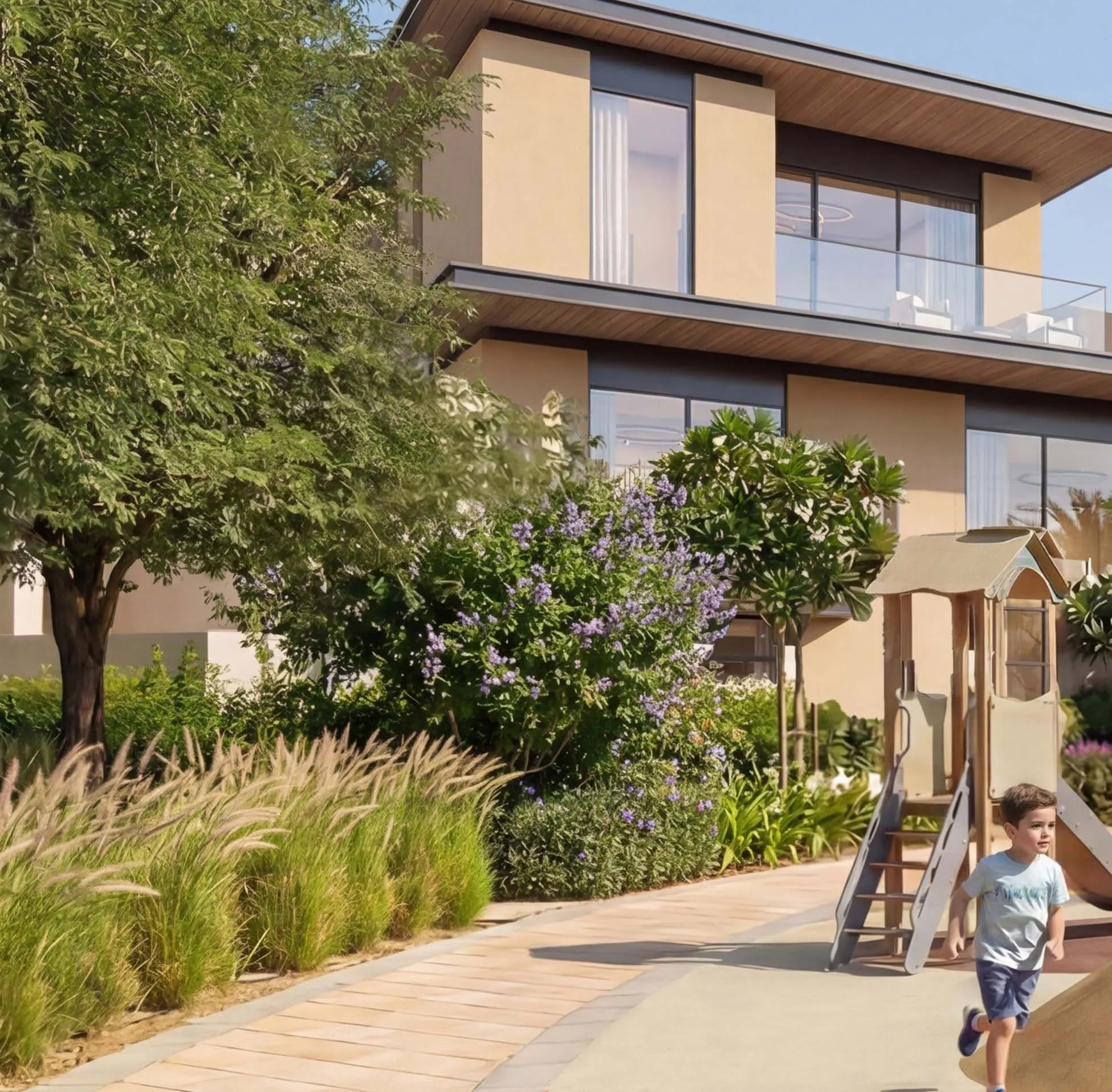 The Terraces at Sobha City is a residential development by Sobha, located in the up-and-coming coastal neighborhood of Al Bahia in Abu Dhabi. The project offers a collection of villas with private gardens, delivered semi-furnished, designed to maximize natural light, privacy, and a seamless connection between indoor and outdoor spaces. Some villas feature private elevators, swimming pools, and covered parking.