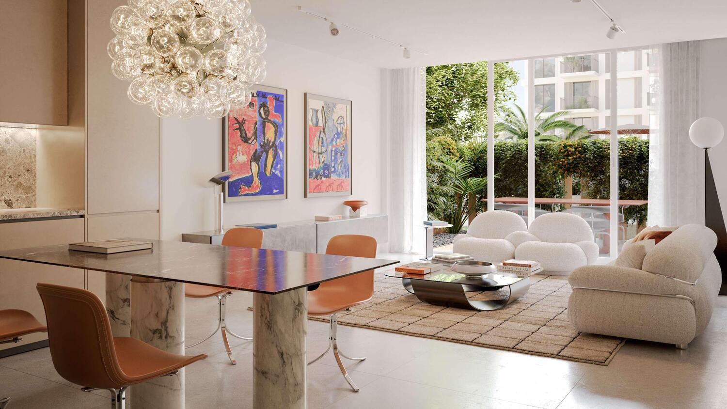 À l’intérieur, le développement propose une sélection raffinée d’appartements allant du 1 au 3 chambres, ainsi que des duplex élégants. Chaque résidence se distingue par des volumes ouverts, une abondante lumière naturelle et des finitions soignées mêlant minimalisme moderne et tons chaleureux. Terrasses privées, dressings, salles de bains luxueuses et agencements intelligents assurent un confort optimal pour les célibataires comme pour les familles.