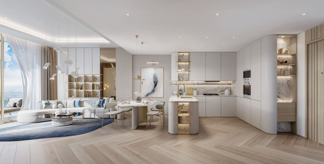 Pensé comme une véritable retraite balnéaire, le design de Beach Walk 4 s’inspire des codes de l’hôtellerie de luxe. Les teintes douces, les matières nobles et les touches dorées créent une ambiance à la fois élégante et apaisante. De larges baies vitrées baignent les intérieurs de lumière naturelle et révèlent des panoramas saisissants sur les eaux turquoise du Golfe Persique et sur les contours iconiques de Dubaï.