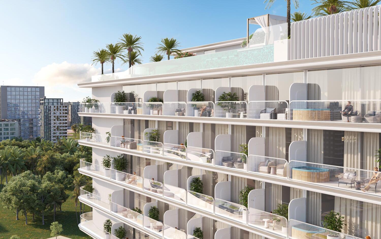 Cove Edition 5 offre un art de vivre centré sur le bien-être : une piscine à débordement sur le toit avec vue panoramique sur la skyline, des jardins paysagers, une salle de sport dernier cri, ainsi que des espaces conviviaux pour les familles et les enfants. Un clubhouse moderne et des zones communes calmes et élégamment aménagées viennent compléter cette expérience résidentielle.