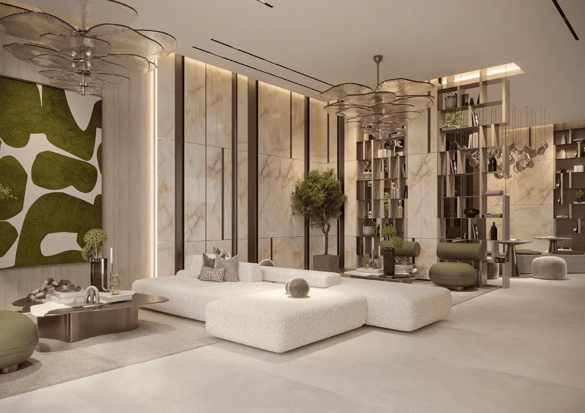 Les résidents bénéficient d’équipements variés incluant piscine, pool lounge, espace barbecue, piscine et aire de jeux pour enfants, billard, mur d’escalade, jardin floral, fontaine, simulateur de golf, espaces loisirs, cinéma en plein air, salle de sport, clubhouse et zones récréatives.