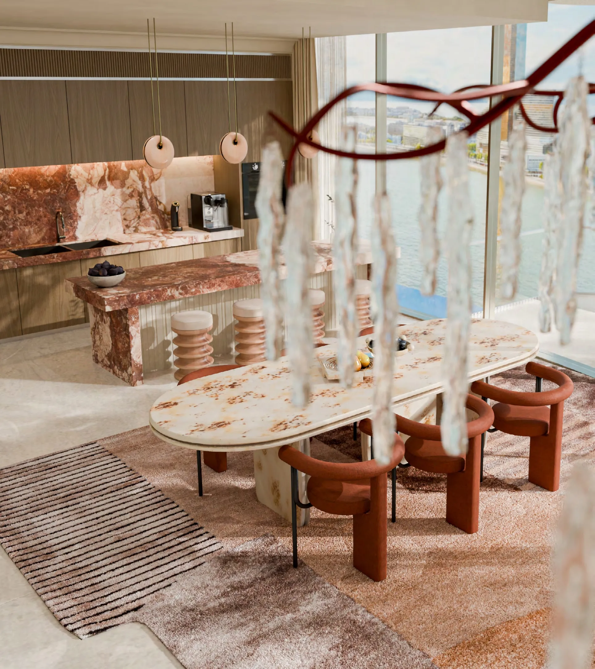 Les résidents profitent d’équipements raffinés incluant une piscine à débordement, un espace barbecue et dining extérieur, des jardins paysagers, une salle événementielle avec bibliothèque, une salle de sport et un espace yoga. Un cadre de vie pensé pour la sérénité et le raffinement.