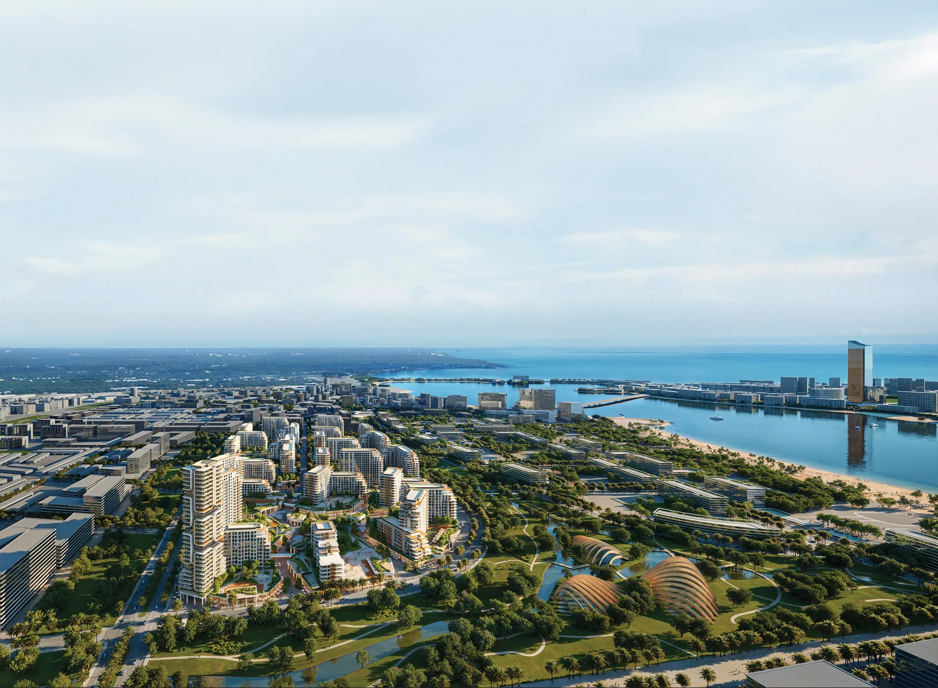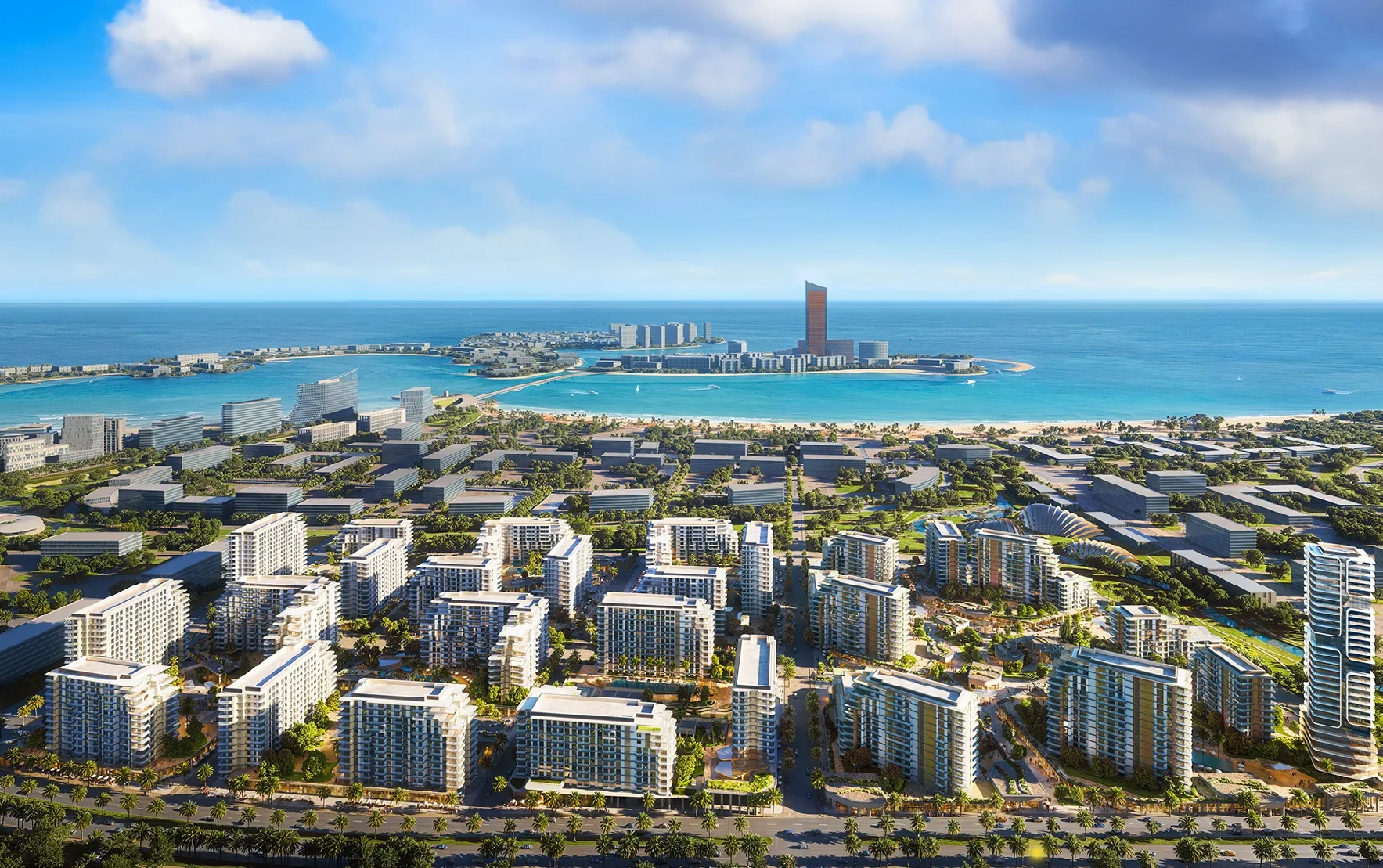 Les résidents profitent d’équipements variés incluant zone yoga, piscine, salle de sport, clubhouse, jacuzzi, piscine pour enfants, aires de jeux, restaurants et cafés, espace co-working et jardins paysagers. Un mode de vie complet entre mer et détente.