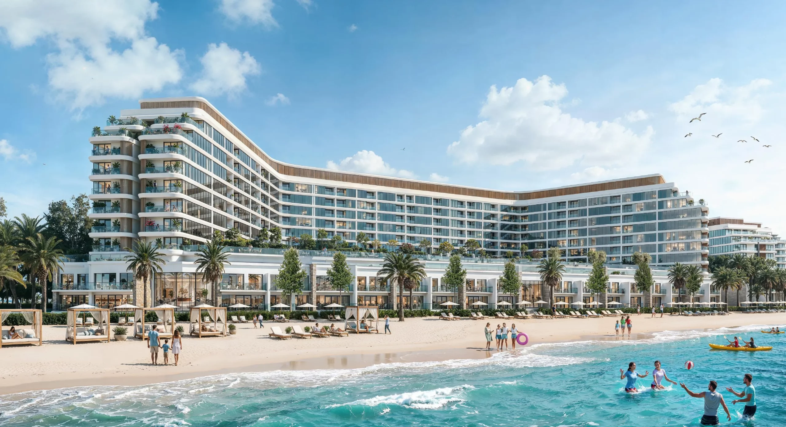 Les résidents profitent d’un accès direct à une plage naturelle et une plage lagon, d’une piscine à débordement, d’un centre fitness dernière génération, de parcs paysagers, d’aires de jeux pour enfants, de sports nautiques d’aventure, d’un cinéma en plein air et d’un centre communautaire.